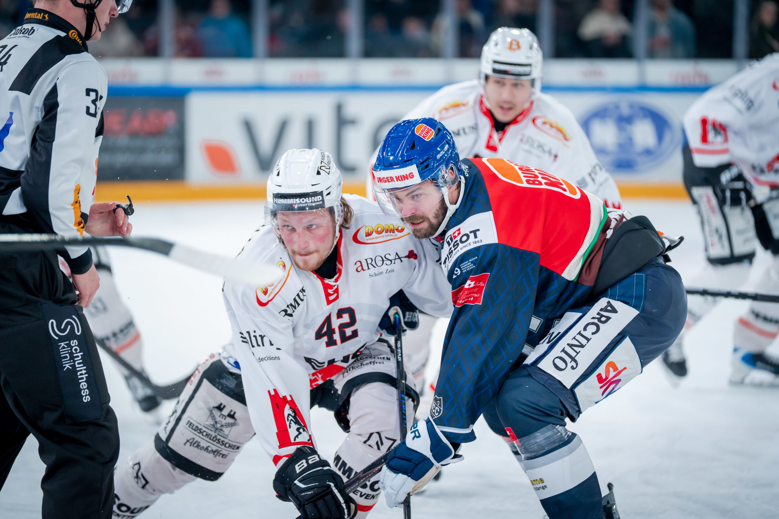 Pénalités : 6 x 2′ (Grossniklaus, J. Loosli, Matewa, Frossard, M. Loosli, Eugster) + 1 x 5′ + PM (In-Albon) contre le HCC – 9 x 2′ contre Coire